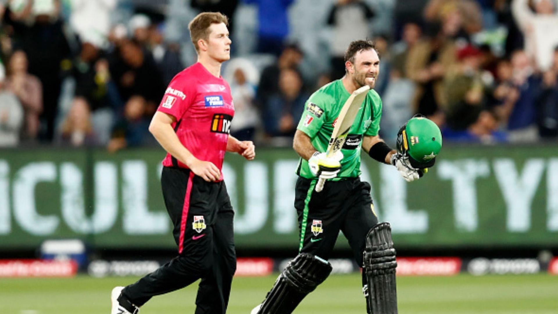 मेलबर्न स्टार्स की तरफ से ओपनिंग के लिए क्रीज पर मार्कस स्टोइनिस और जो क्लार्क की जोड़ी आई. दोनों खिलाड़ी ही टीम को अच्छी शुरुआत नहीं दे पाए और 3 और 0 रन पर आउट हो गए. इसके बाद निक लार्किन भी 23 रन पर पवेलियन लौट गए. अब पूरा जिम्मा टीम के कप्तान ग्लेन मैक्सवेल पर था. मैक्सवेल ने यहां आते ही तूफानी पारी खेलनी शुरू कर दी. मैक्सवेल ने 57 गेंदों में 103 रनों की पारी खेली. इस दौरान उन्होंने 180.70 के स्ट्राइक रेट से रन बटोरने शुरू किए और अपनी पारी में कुल 12 चौके और 3 छक्के जड़े. मैक्सेवल ने 35 गेंदों में पहले अपना अर्धशतक पूरा किया और इसके बाद फिर शतक. मैच में मैक्सवेल दूसरे ओवर की शुरुआत में ही क्रीज पर आ गए थे. इसके अलावा मैक्सवेल अब बीबीएल में छक्को का शतक लगाने वाले दूसरे बल्लेबाज भी बन गए हैं.