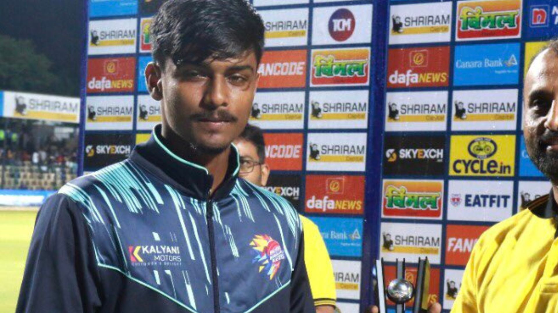 महाराजा टी20 (Maharaja T20) में बल्लेबाजों का बवाल देखने को मिल रहा है. 20वें मैच में बेंगलुरु ब्लास्टर्स (Bengaluru Blasters) और शिवामोगा स्ट्राइकर्स (Shivamogga Strikers) के बीच मुकाबला था जहां एक बार फिर युवा बल्लेबाज का कहर देखने को मिला. इस बल्लेबाज ने बेंगलुरु में ऐसी आंधी उड़ाई की शिवामोगा के गेंदबाज देखते रह गए. हम यहां एलआर चेतन की बात कर रहे हैं जिन्होंने अकेले दम पर शतक जड़ा और नाबाद रहकर टीम को बड़े स्कोर तक ले गए. नतीजा ये रहा कि, शिवामोगा की टीम सिर्फ 166 रन ही बना पाई. और ब्लास्टर्स ने इस मैच पर 25 रन से कब्जा कर लिया.