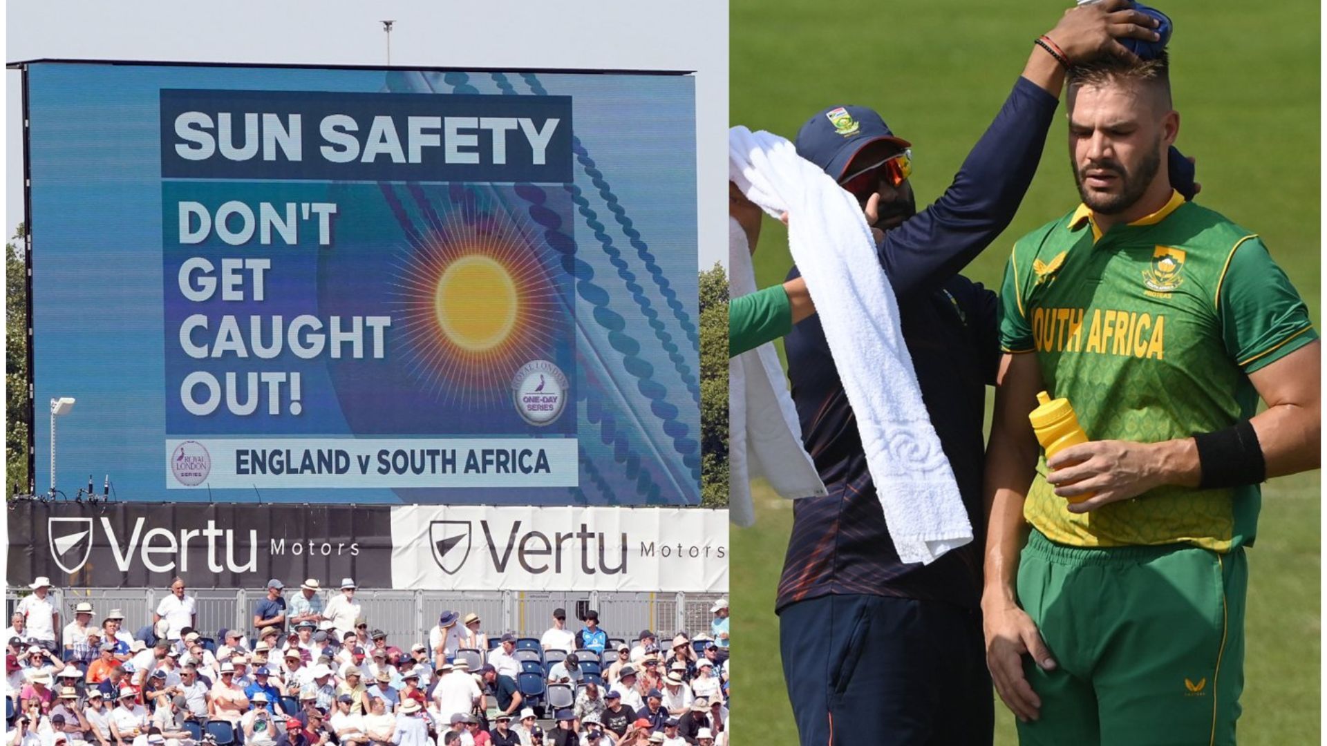तीन मैचों की वनडे सीरीज में पहला मैच 19 जुलाई को डरहम में खेला गया. यहां का तपमान 37 डिग्री सेल्सियस से ज्यादा या उसके आस-पास ही दर्ज किया गया. दोनों ही टीम के खिलाड़ी गर्मी से बेहाल दिखे. साउथ अफ्रीका के खिलाड़ियों को तो यह भी कहते सुना गया कि हम इतनी धूप सहने के आदी हैं, लेकिन यहां गर्मी बहुत ज्यादा है. एडेन मार्करम सहित कुछ खिलाड़ियों ने सिर पर बर्फ से सिकाई तक की थी. इंग्लैंड की गर्मी ने लोगों का हाल बेहाल कर दिया है.
