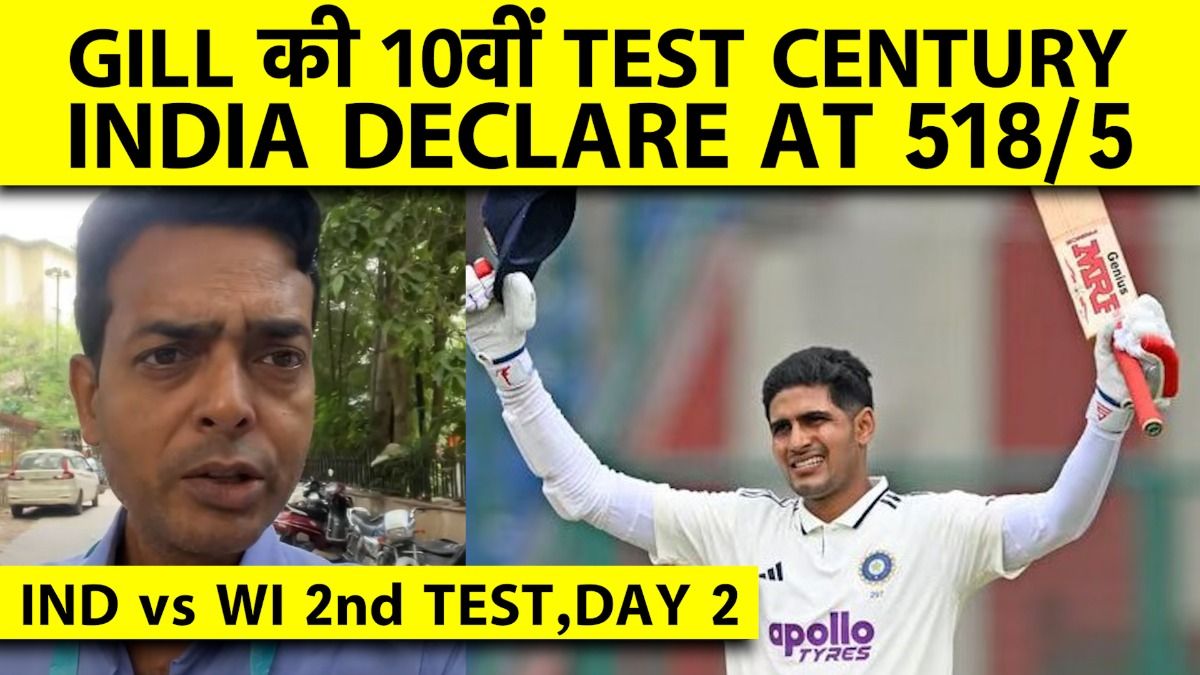 भारत बनाम वेस्टइंडीज़ टेस्ट मैच में कप्तान शुभमन गिल के नाबाद शतक, साई सुदर्शन और ध्रुव जुरेल की महत्वपूर्ण पारियों की बदौलत भारत ने 518 रन बनाकर पारी घोषित कर दी है। इस बुलेटिन में मैच के विश्लेषण के साथ-साथ विराट कोहली के भविष्य और मोहम्मद शमी को टीम में मौका न मिलने पर भी चर्चा की गई। 'मोहम्मद शमी को आप कहीं ना कहीं हिंट तो यही दे रहे हो की अब आप ना टेस्ट में ना ओडीआई में, अब आपकी कहीं पे जगह नहीं बन रही है।' भारतीय टीम ने यह मज़बूत स्कोर ध्रुव जुरेल के आउट होते ही घोषित किया, जो टीम के आक्रामक इरादे को दिखाता है। गेंदबाज़ों के लिए मददगार होती पिच पर अब जसप्रीत बुमराह और कुलदीप यादव से अच्छे प्रदर्शन की उम्मीद है। एक्सपर्ट्स का मानना है कि वेस्टइंडीज़ की बल्लेबाज़ी में वह दम नहीं है कि वे इस बड़े स्कोर का सामना कर सकें और यह मैच तीन दिन में ही भारत की जीत के साथ खत्म हो सकता है।
